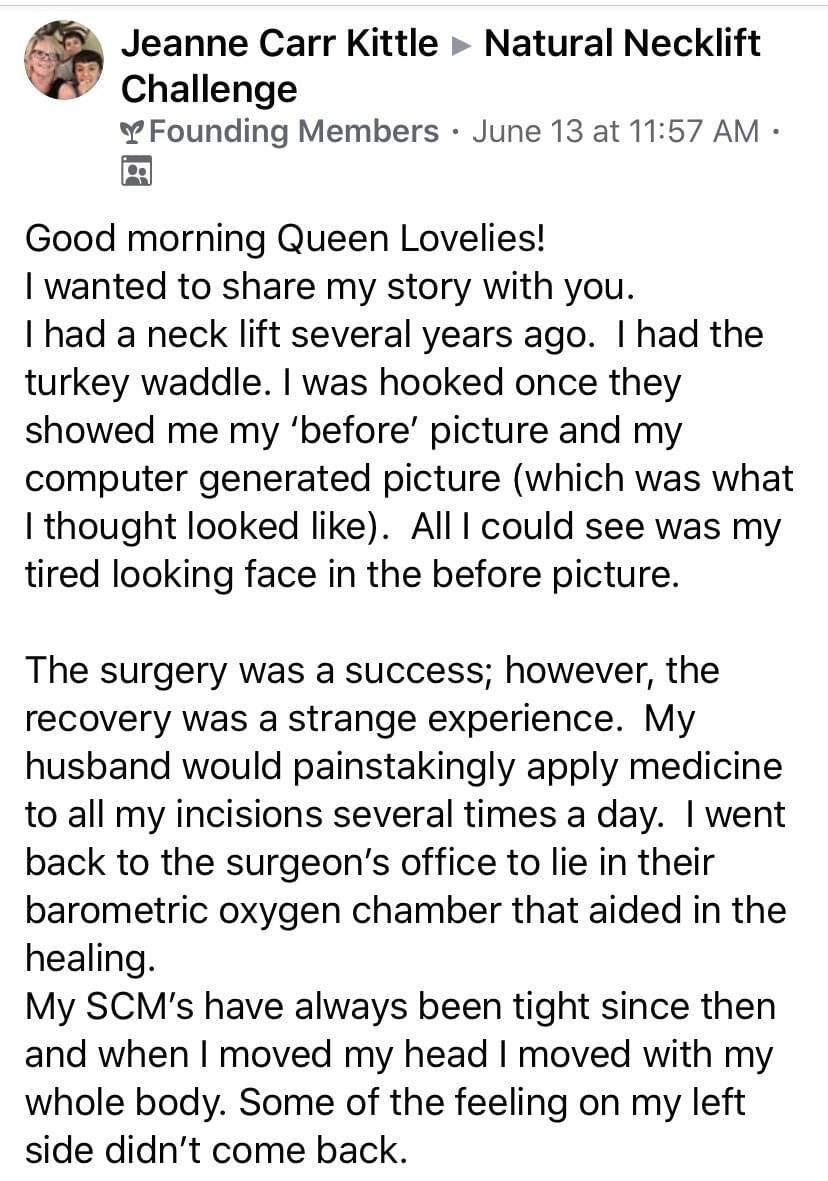 Method 3: ($200 value) Do you notice that even people who are talking about skincare has tense looking necks? This addresses the one specific muscle that will help your neck look long and relaxed.